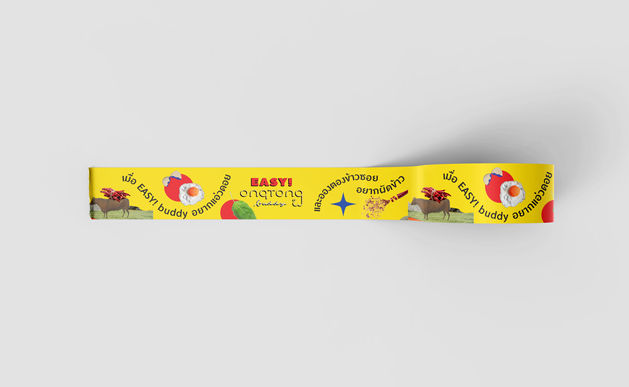 Utilizing the logo identities and the primary colors of Ongtong Khaosoi (yellow) and EASY! buddy (red and blue), additional with the storytelling collage combining elements representing both brand on the campaign promotional materials enabled us to create the work that spoke for both brands and was able to be recognized by the target audience.
